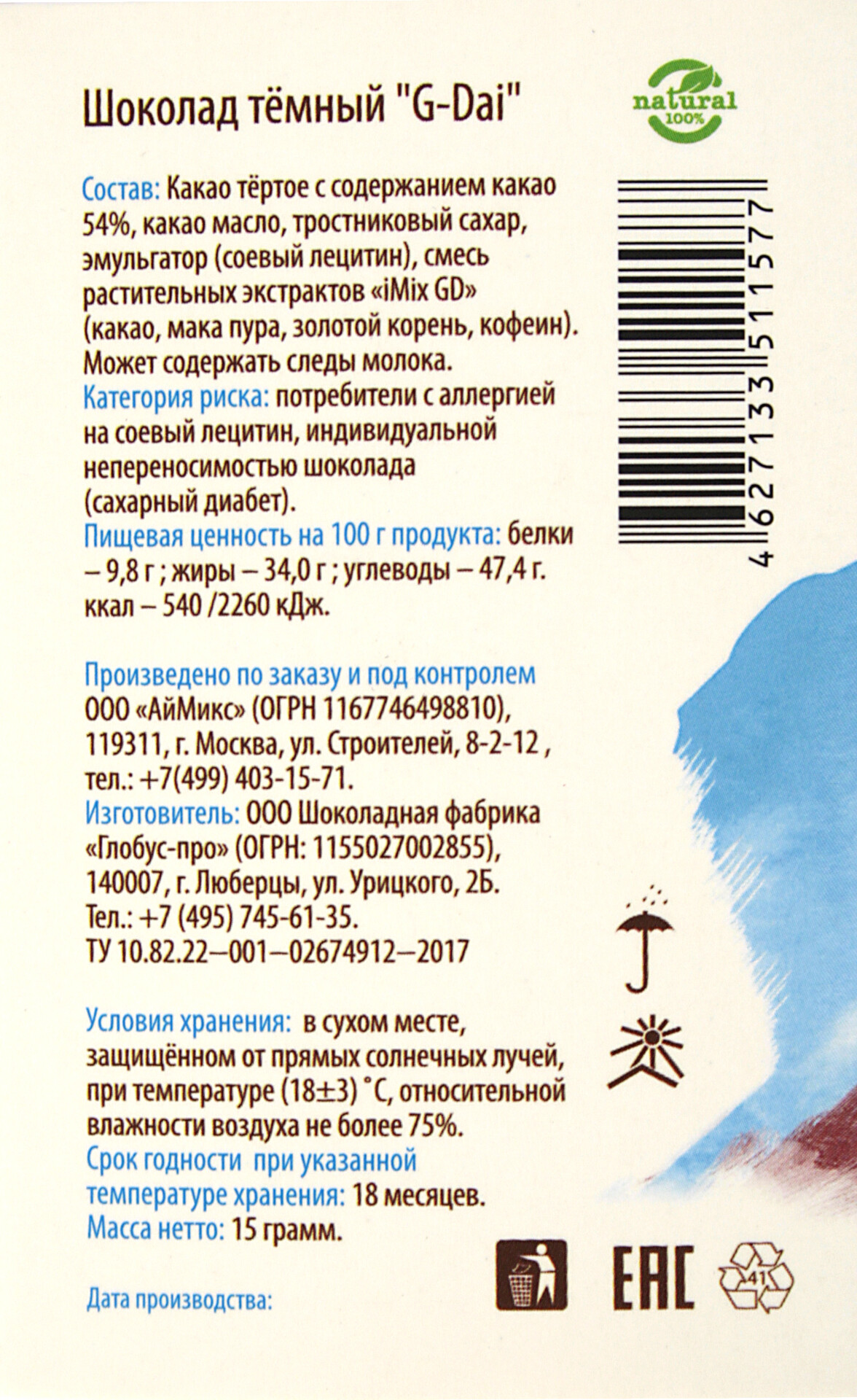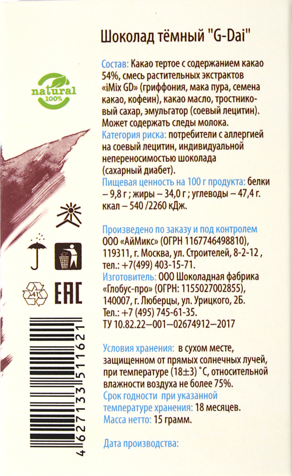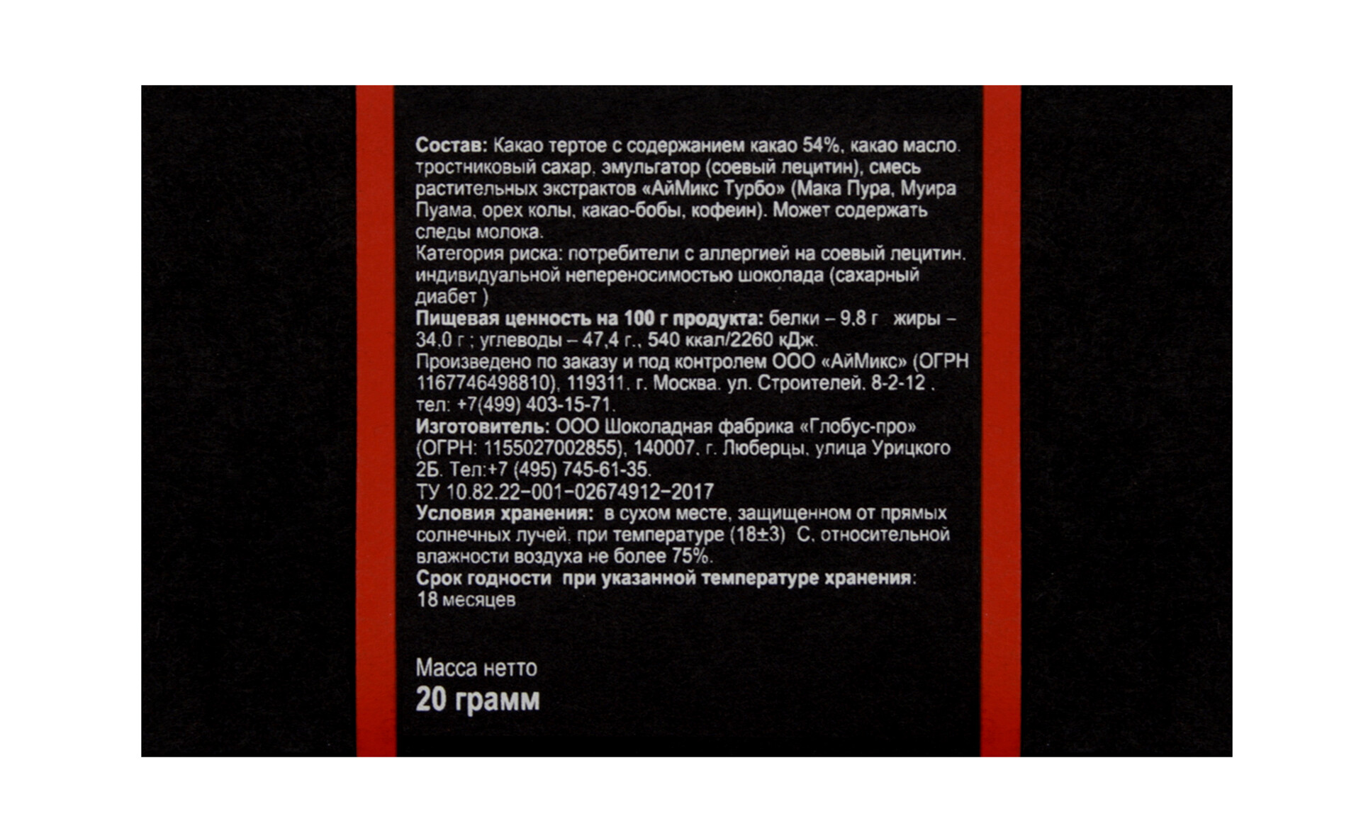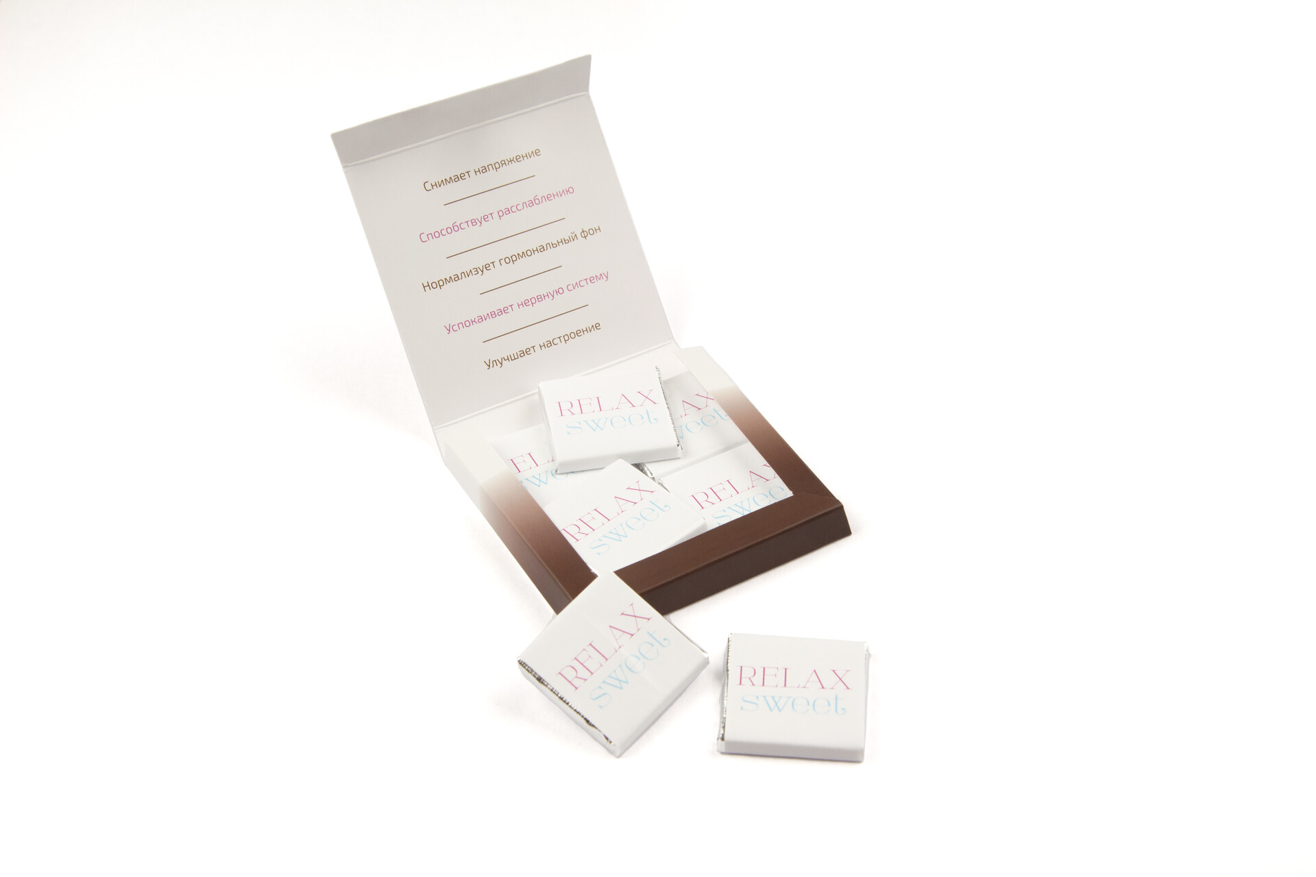 Наконец, компания АйМикс идеально разработала внешний и внутренний вид упаковки: плитка упакована в золотистую фольгу, вложена памятка о действующих веществах, а соблазнительные черные и красные цвета настроят на романтический лад.